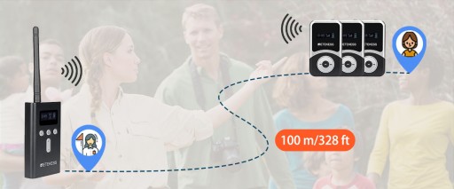 System szeptany ma zasięg do 100 metrów. Dzięki temu przewodnik/lider zespołu i uczestnicy mogą zachować wyraźną, niezakłóconą komunikację nawet przy znacznych odległościach od siebie. Jest to szczególnie przydatne w przypadku dużych grup lub wycieczek plenerowych, gdzie uczestnicy mogą być rozproszeni.