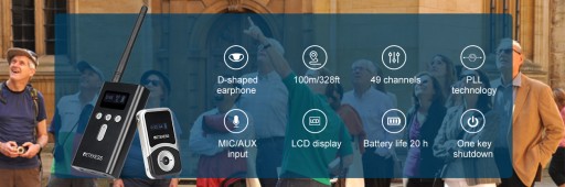 System przewodników szeptanych umożliwia odwiedzającym/publicznościom łatwe słyszenie przewodnika/prezentera przy stałej głośności, bez konieczności martwienia się o odległość między nimi. To radio szeptane nadaje się do różnych sytuacji, w których komunikacja jest utrudniona ze względu na odległość i hałas, takich jak wycieczki, spotkania, wykłady, szkolenia, zajęcia na świeżym powietrzu, kościół itp.
