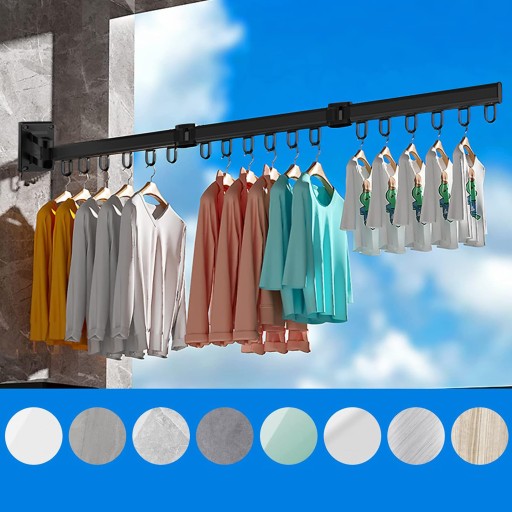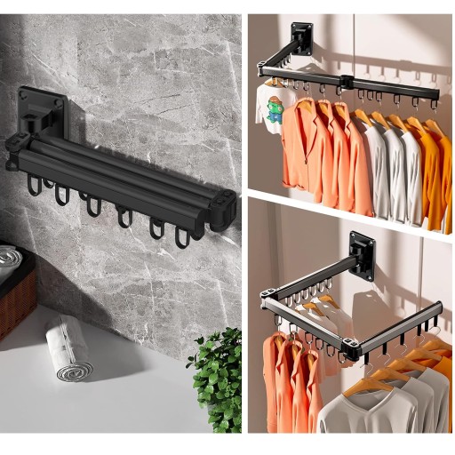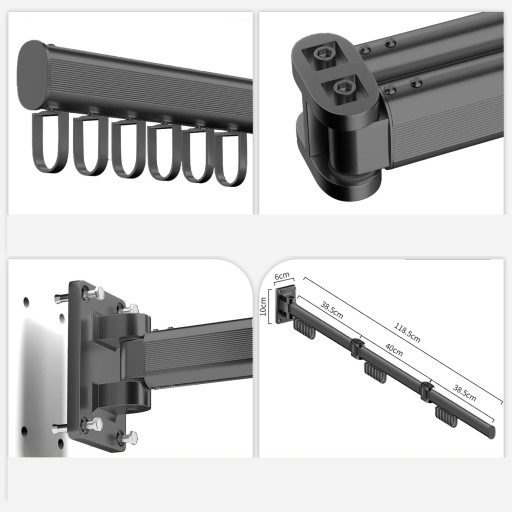 ✅Piękne wzornictwo i praktyczne zastosowanie: czarna gładka powierzchnia i funkcja oszczędzająca miejsce zapewniają porządek i porządek w praniu. Koniec z bałaganem. Drążek na ubrania do montażu na ścianie jest idealny do montażu na balkonie, pralni, szafie, kuchni, salonie, łazience, sypialni.