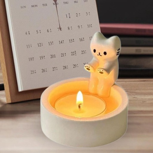 [Unikalny projekt]: Stojak na świecę przedstawia kota, który nadaje odrobinę fantazji na blacie lub biurku.