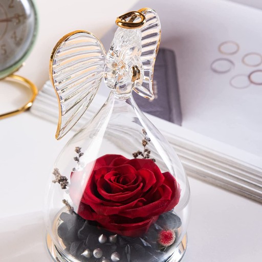 💝Umieść szklaną kopułę, bezpiecznie i stylowo. Anioł nosi złotą koronę na głowie i parę skrzydeł z piór na plecach.
