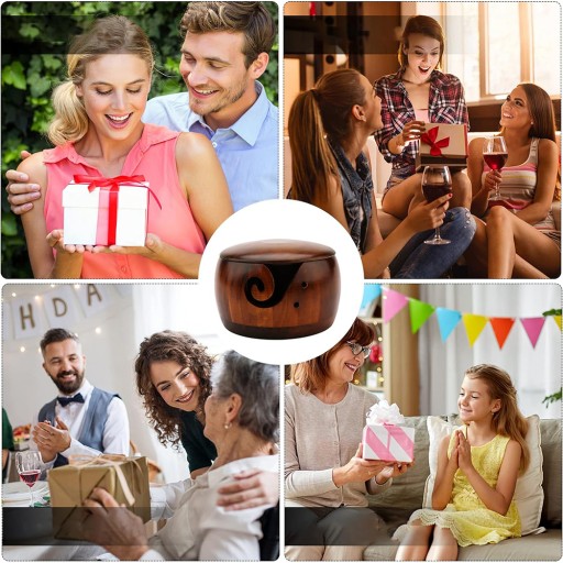🧶 【Styl wizualny】: Zwijana krawędź, na krawędzi miski znajdują się 2 małe otwory, które są wygodne do nawlekania i skutecznie zapobiegają splątaniu nici podczas tkania; ta drewniana miska z przędzy jest wykwintna i praktyczna do nałożenia na kawę stół lub biurko; można go również używać jako dekoracyjny wazon, miskę na słodycze lub stojak na rośliny