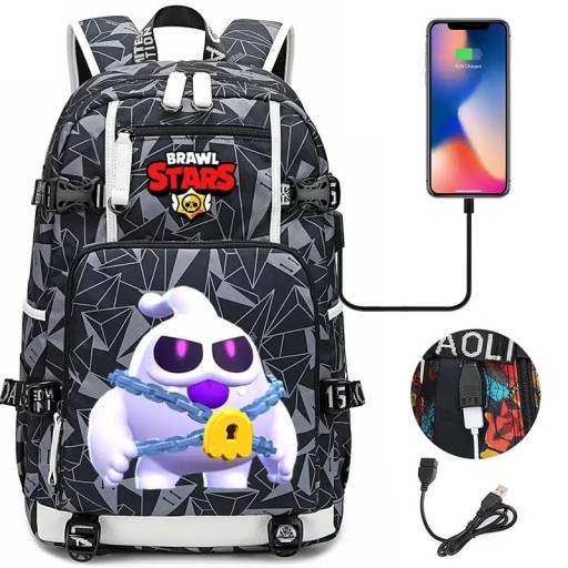 Plecak Brawl Stars Ghost Squeak z ładowaniem USB. Duża pojemność