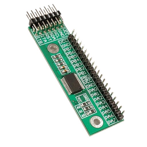 16/O moduł rozszerzeń interfejsu 12C, przyjmuje chip MCP23017 MicroChip.