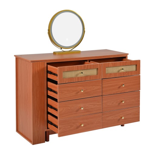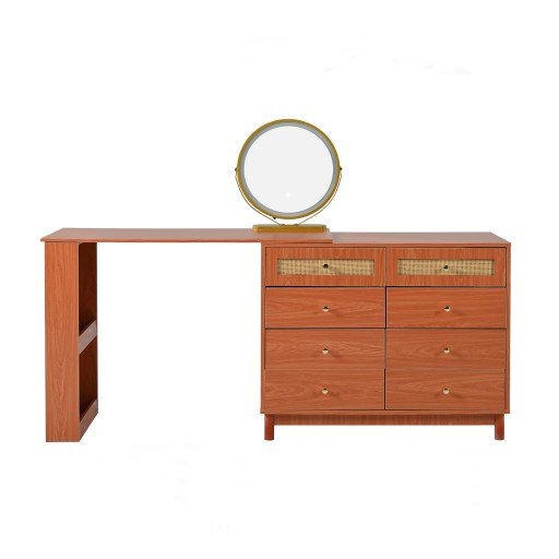 W porównaniu z innymi podobnymi produktami nasza toaletka 2 w 1 ma 8 szuflad i otwartą półkę, która może służyć do organizowania i przechowywania różnych kosmetyków. Wyrafinowany projekt przestrzeni do przechowywania zapewnia schludne i uporządkowane otoczenie toaletki.