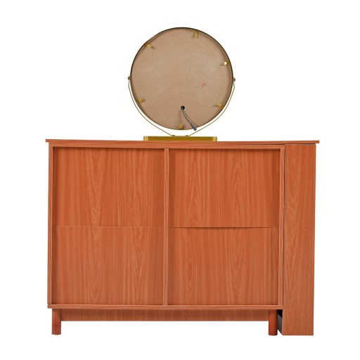 Jest wykonany z wysokiej jakości drewna. Szafka może służyć jako przedłużenie toaletki. W zależności od potrzeb możesz podłączyć go do stołu z lewej lub prawej strony. Jeśli chcesz zaoszczędzić miejsce, można go również umieścić pod stołem, tworząc harmonijny ogólny obraz i dodając estetyki.