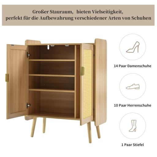 Шкаф для обуви с 2 дверцами, регулируемыми полками и плетением.
