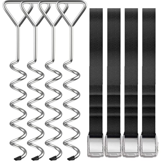 ➡️ Co otrzymasz: zestaw do mocowania składający się z 4 spiralnych kotwic do podłoża i 4 pasków poliestrowych. Nadaje się nie tylko do trampoliny, ale również do huśtawek, szklarni, namiotów, zjeżdżalni dla dzieci, wież do zabawy itp