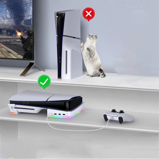 🎮Podstawka z silikonowymi podkładkami utrzymuje konsolę w pozycji poziomej, co zapewnia większą stabilność. Zapobiegaj przewróceniu konsoli do gier i chroń ją.