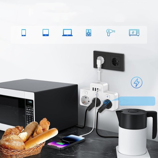 ✅【7 w 1 listwa zasilająca】 Ta europejska listwa zasilająca jest wyposażona w 3 gniazda i 3 porty USB A + 1 port USB C, dzięki czemu można ładować 7 różnych urządzeń jednocześnie. Może ładować i zasilać wszystko, od dużych urządzeń po telefon komórkowy, i nadaje się do użytku domowego i biurowego.