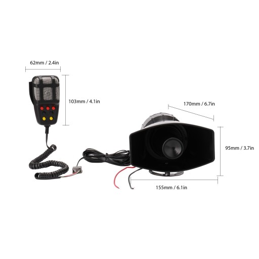 Głośniki samochodowej syreny są wbudowane w system nagłośnieniowy. Dzięki temu mikrofonowi w samochodzie możesz rozmawiać z innymi osobami. Możesz też żartować ze znajomymi, nie będą wiedzieć, kto mówi. Może wydać 7 głośnych i wyraźnych dźwięków alarmowych. Bardzo obciążony i słyszalny, nawet jeśli jesteś w odległym miejscu.