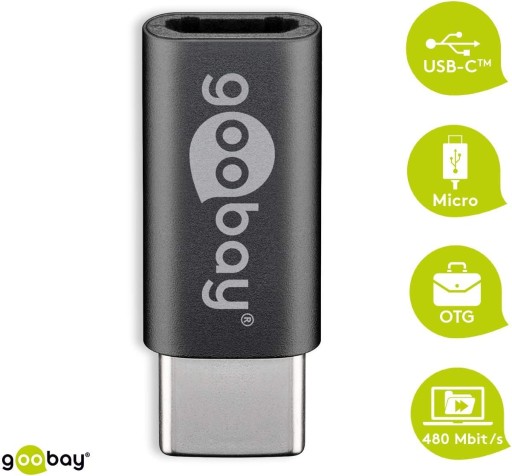 - SPECYFIKACJA - typ: Micro USB 2.0 USB Typ-C; złącze: USB-C (wtyk / męski / male); złącze: Micro USB (gniazdo / żeński / female); przesył danych: tak, 480Mbps; ładowanie urządzeń: tak, max 2.1A; materiał: aluminium/PVC; system: Plug & Play; długość smyczy: 6,5cm; wymiary: 2,5/0,5/1,5cm; waga: 0,003kg; waga w opakowaniu: 0,009kg.