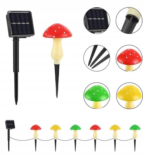 6 САДОВЫХ ЛАМП СОЛНЕЧНЫХ, РАЗНОЦВЕТНЫЕ, ДЕКОРАТИВНЫЕ ГРИБЫ