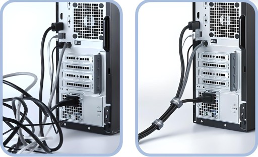 - Projekt Bez Wiązania: Twoje kable pozostają uporządkowane bez ryzyka zaplątania.