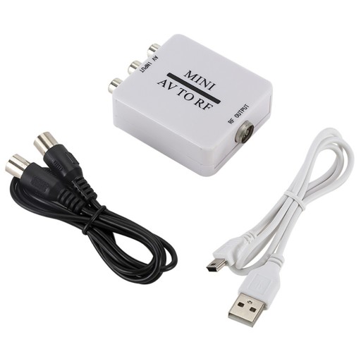 Mini HD konwerter wideo RCA AV CVSB na RF konwerter adaptera wideo wsparcie RF 67 25Mhz 61 25Mhz dla TV VHS magnetowid DVD rejestratory Opis:Mini AV na sygnał RF konwerter, który konwertuje sygnał wideo lub sygnał audio na RF sygnał wizyjny sygnał wideo i theaudio sygnałów. Obsługuje sygnały linii bocznej systemu DVI, dzięki czemu można odtwarzać na telewizorze, magnetowidzie VHS, nagrywarkach DVD itp.Nie trzeba instalować sterowników, przenośnych, elastycznych, plug and play.Niska moc, brak zasilacz, jest wygodny w użyciu.Ten konwerter wideo mini HD jest kompaktowy, łatwy do noszenia.Specyfikacja:Kolor: biały.Porty wejściowe: 1x RCA.Porty wyjściowe: 1x RF.Częstotliwość RF: 67.25Mhz, 61.25Mhz.Uwaga:Ze względu na rozdzielczość ekranu kolor może być nieco inny.Mogą występować błędy w rozmiarze ze względu na sposób pomiaru.Pakiet zawiera:1x konwerter AV na RF.1x kabel USB.1x kabel RF.