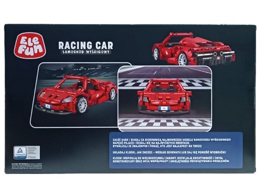 Klocki Elefun Racing Car Samochód wyścigowy C0905, to klocki które zapewnią dziecku wiele godzin wspaniałej zabawy, a dodatkowo wpłyną pozytywnie na kreatywność, wyobraźnię i rozwój zdolności manualnych. Klocki są kompatybilne z innymi markowymi klockami. W skład zestawu wchodzi moduł silnika zapewniający autu napęd frykcyjny, wystarczy ruszyć autem do tyłu i je puścić a auto samo zacznie się poruszać do przodu.