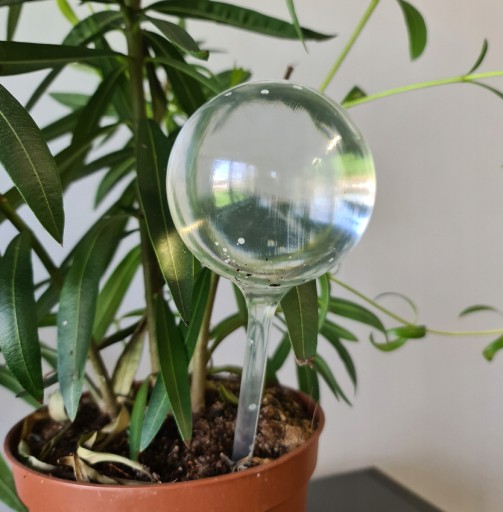 - WYGODA UŻYTKOWANIA - wlej wodę do kuli, następnie wbij do ziemi w doniczce. Gdy gleba staje się sucha, uwalnia tlen, który uwalnia wodę z dozownika. Dokładnie taką ilość ile roślina w tym momencie potrzebuje. Dzięki temu możesz wyjechać np. na urlop.