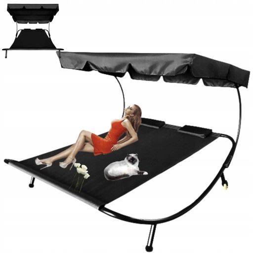 LEŻAK DWUOSOBOWY LEŻANKA OGRODOWA Z DASZKIEM DUŻY Dach PODUSZKI ŁÓŻKO TARAS