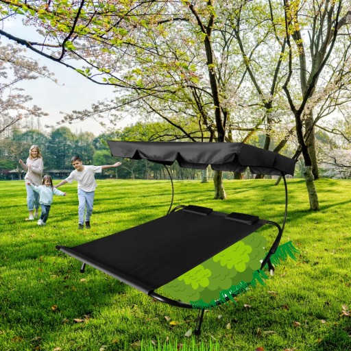 Odchylany daszek zapewnia skuteczną ochronę przed słońcem, umożliwiając relaks nawet w gorące dni.