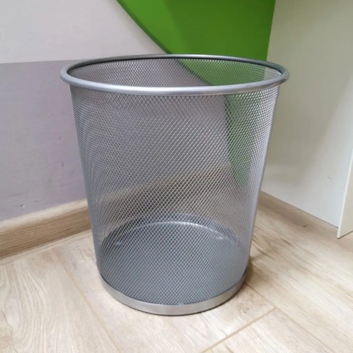 Kosz metalowy, powleczony srebrnym lakierem. Pojemność 12 l. Wymiary: 266x218x280 mm