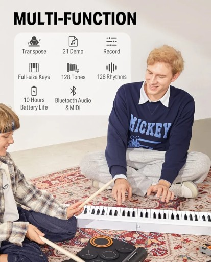 Dwuwarstwowy, składany korpus fortepianu o wadze 3,4 kg można z łatwością załadować do torby na fortepian, co pozwala na łatwy transport pianina do szkoły, na imprezę, na scenę w celu ćwiczeń lub występu. Nie czekaj i od razu zacznij odtwarzać swoją muzykę!