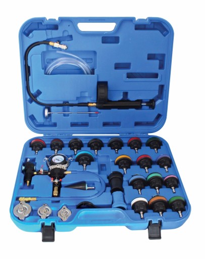 TESTER SZCZELNOŚCI UKŁADU CHŁODZENIA Z POMPKĄ I ADAPTERAMI - 27 ELEMENTÓW