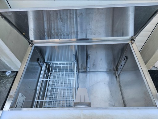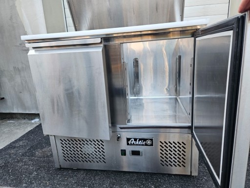 mamy do sprzedania stół chłodniczy sałatkowy 2-drzwiowy z pokrywą uchylną Hendi. Urządzenie było używane, posiada normalne ślady użytkowania. Pod względem technicznym stół jest w pelni sprawny.