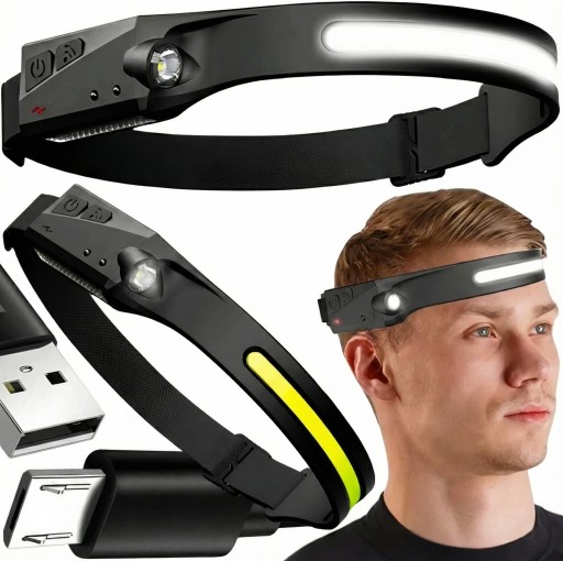 MOCNA LATARKA CZOŁOWA LED REFLEKTOR NA GŁOWĘ CZOŁO COB CZOŁÓWKA WODOODPORNA