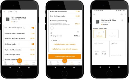 Wartość zmierzchu można indywidualnie regulować w zakresie od 1 do 1000 luksów jasności otoczenia za pomocą aplikacji