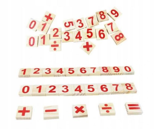 Co ważne, w komplecie znajdują się nie tylko kolorowe patyczki, ale także klocki z nadrukowanymi cyferkami, dla lepszego obrazowania oraz zapamiętywania, oraz bloki z znakami działań matematycznych, a to zwiększa możliwości wykorzystania całego kompletu.