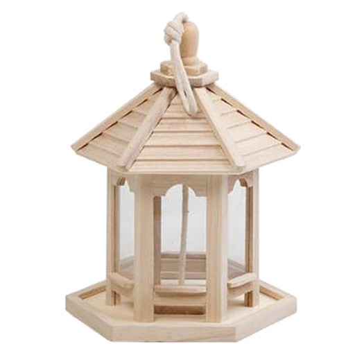 Karmnik dla ptaków o sześciokątnym kształcie ma pochyły dach, który chroni ptaki przed .