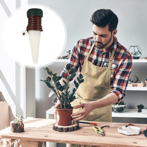 - - Łatwy w instalacji i obsłudze. Zdejmij nakrętkę i napełnij ją wodą. Pozostawić do namoczenia w misce na 15 minut. Następnie włóż kołek do doniczki, a plastikową rurkę do pojemnika na wodę.
