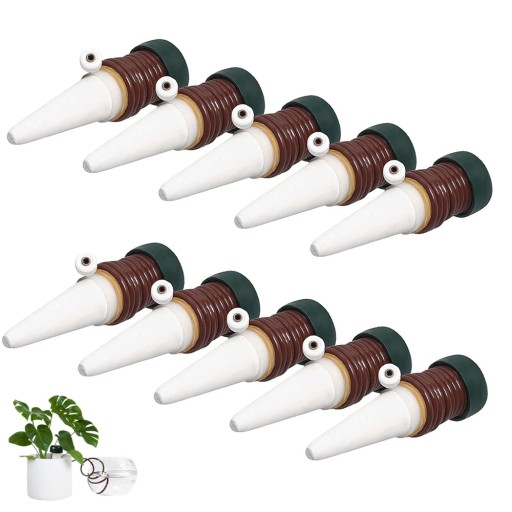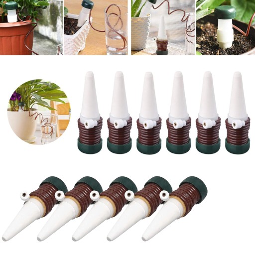 💧Łatwe w montażu przyłącze wodne i kompletne przyłącze do nawadniania: Zdejmij pokrywę i napełnij ją wodą. Namoczyć w misce na 15 minut. Następnie włóż kołek do doniczki, a plastikową rurkę do pojemnika na wodę. W miarę wysychania gleby ceramiczny stożek będzie stopniowo uwalniał wodę do otaczającej gleby.