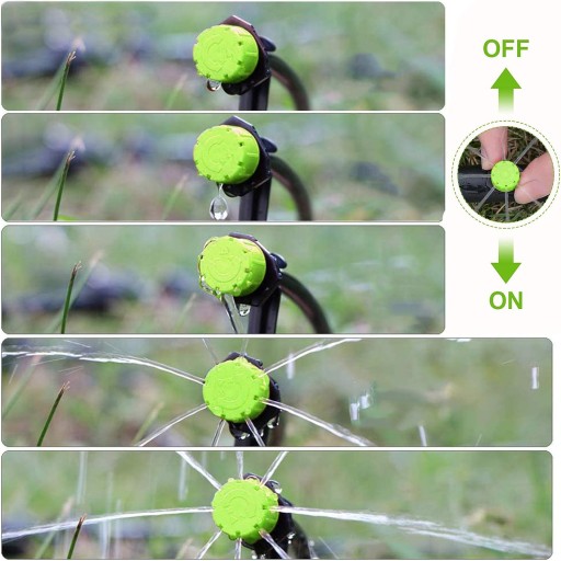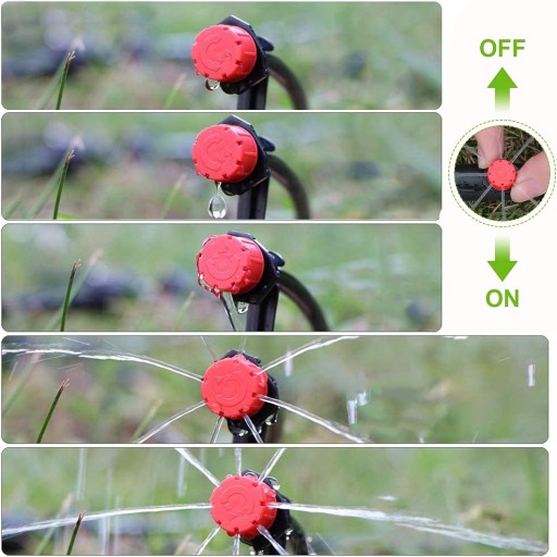 💧 【Łatwy w Użyciu】:Obrót nasadki umożliwia regulację przepływu w dół i średnicy za pomocą mechanizmu zapadkowego na nasadce i całkowitego zamknięcia wycięcia w podstawie. Te zraszacze do nawadniania kropelkowego mogą regulować przepływ, obracać je w lewo, aby je zamknąć, i obracać w prawo, aby dostosować przepływ.