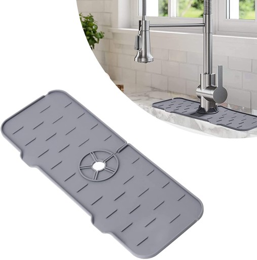 Pasuje do wszystkich podkładek rozbryzgowych do kranu-14.6x5.5 ", regulowana średnica otworu środkowego, pasuje do rurek kranu 2.5". Maty do zlewów są precyzyjnie docięte na wymiar, pasują do wszystkich kranów zlewowych w kuchniach, łazienkach, kamperach, kawiarniach, restauracjach, gospodarstwach rolnych, łazienkach, zawsze utrzymując blaty w czystości i porządku.