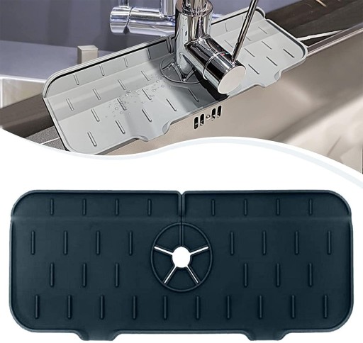 Wszechstronność — podkładka pod kran nie tylko szybko odprowadza rozlaną wodę, ale także działa jako osłona przeciwbryzgowa, w której możesz umieścić szczoteczkę do zębów, kubki, środek do dezynfekcji rąk, mydło do naczyń i zatrzymać blat zlewu po użyciu kranu!