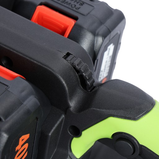 Elektryczna akumulatorowa piła łańcuchowa wykonana jest z wysokiej jakości ekologicznego tworzywa ABS, stali i czystej miedzi, bezszczotkowego silnika.