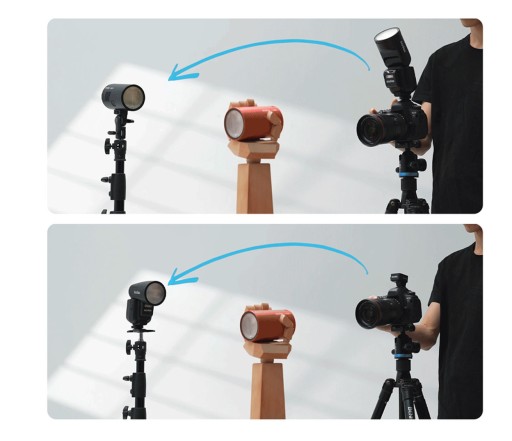 【Elastyczny kąt fotografowania】Dzięki kątowi obrotu od 0° do 330° w poziomie i od -7° do 120° w pionie, V1Pro umożliwia łatwe wykonywanie błysku bezpośredniego, błysku odbitego i wszelkich innych technik fotografowania za pomocą prostego obrotu głowicy lampy.