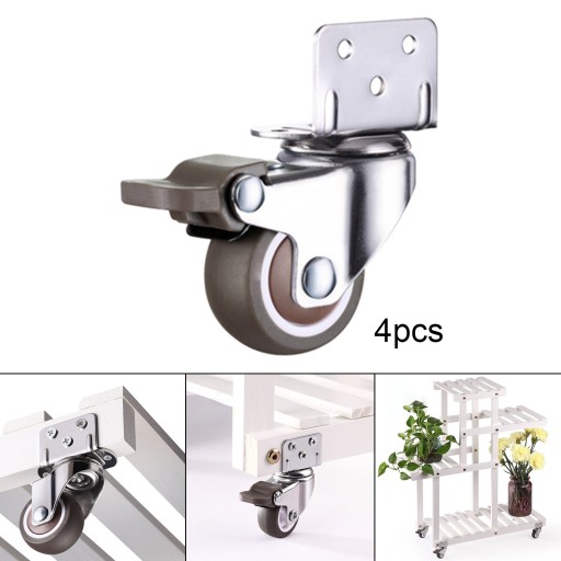 4x Obrotowe Kółka Gumowe Koło Kuchnia Łóżeczko Regał z Hamulcem 3.8 cm