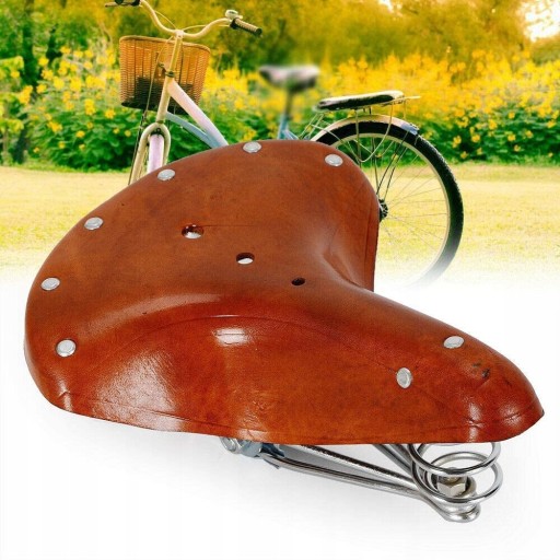 Skórzane Siodełko Rowerowe Skóra Bydlęca dla Kobiet i Mężczyzn Brązowe 26 x 21,5 cm