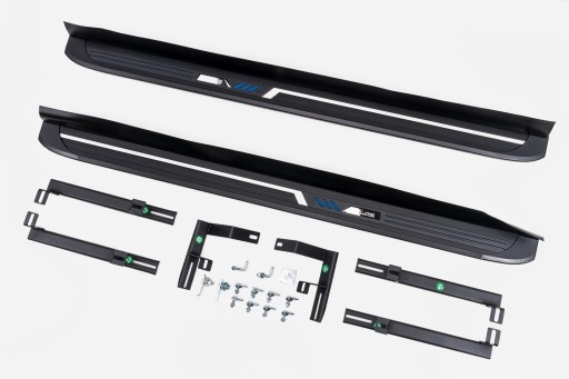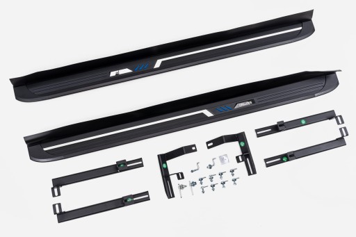 W zestawie komplet stopni bocznych (prawy i lewy), elementy montażowe oraz instrukcja. Progi montowane są na fabrycznych punktach montażowych. Montaż stopni nie wymaga wiercenia dodatkowych otworów! Zalecamy profesjonalny montaż w warsztacie (z doświadczenia wiemy że najlepiej skorzystać z usług zakładu lakierniczego lub blacharskiego ponieważ to te zakłady zajmują się najczęściej montażem listew, dokładek oraz stopni, więc montaż dla tych zakładów jest czynnością intuicyjną).