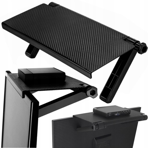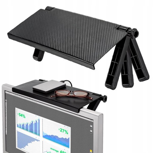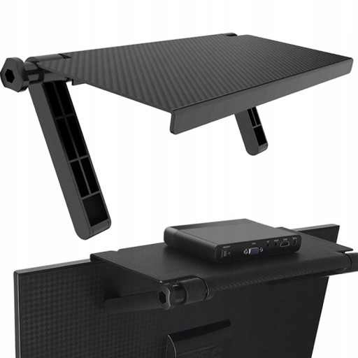 ✔️ Dzięki regulowanym nóżkom, półka dopasuje się do każdego płaskiego monitora