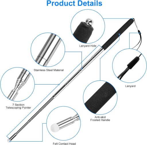 🎁 【Materiał wysokiej jakości】 Wskaźnik dydaktyczny wykonany jest z materiału PVC ze stali nierdzewnej, który jest trwały, przenośny, chowany, trwały i wolny od rdzy; wygodny, antypoślizgowy, matowy uchwyt, wygodny w trzymaniu, może być używany przez długi czas, zapewniając doskonałe wrażenia dydaktyczne.