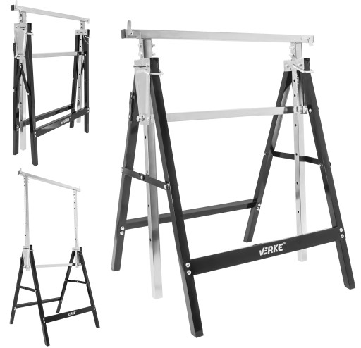 Podstawa robocza o regulowanej wysokości w zakresie od ok. 79 - 130 cm . Nogi wykonane z ocynkowanej blachy stalowej , profil 25 x 25 mm, powierzchnia lakierowana . Udźwig - 150 kg , waga 4,5 kg . Do prac budowlanych, remontowych i warsztatowych .