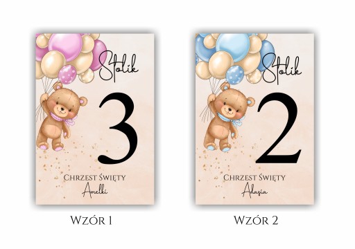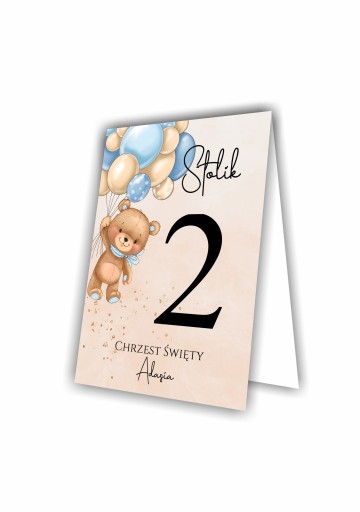 Numerki na stoły z dziecięca grafiką misia oraz personalizacją.