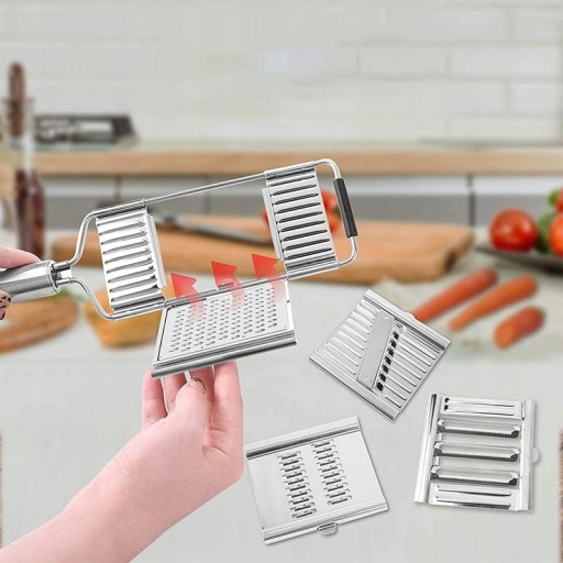 Ergonomiczna krajalnica do warzyw z antypoślizgowym uchwytem i 3 różnymi ostrzami ze stali nierdzewnej pozwala przygotować świeże i zdrowe domowe potrawy 8x szybciej! Oszczędzaj czas i pokrój kilka plasterków cukinii, marchwi, ziemniaków, buraków, cebuli lub pomidorów jednym ruchem!