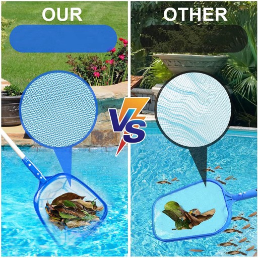 💦【Odporna na zarysowania konstrukcja】 Konstrukcja siatki basenowej z zakrzywionymi krawędziami jest bezpieczna dla wszystkich typów basenów. Siatka jest łatwa w użyciu, krawędzie są zaokrąglone i nie ma ostrych krawędzi, nie zostanie złapana ani uszkodzona przez podszewkę basenu.