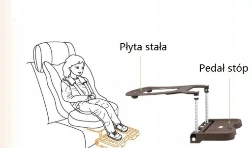 nowoczesny podnóżek do fotelików samochodowych przodem do kierunku jazdy, bez bazy z nogą wspornikową.