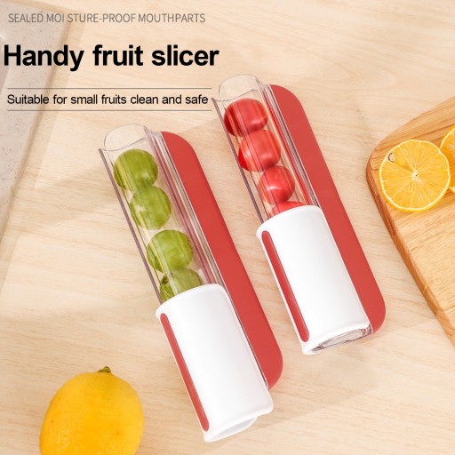 Introducing the versatile grape slicer, a must-have kitchen gadget for effortlessly slicing small fruits and vegetables. This practical tool is perfect for slicing grapes, tomatoes, cherries, and more, making it a convenient addition to any kitchen. The fruit slicing blade is cleverly hidden during use, ensuring safety and ease of use without sacrificing efficiency.
