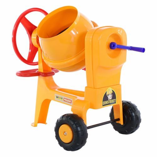 Betoniarka ogrodowa ze względu na swoje okazałe gabaryty – 67 cm wysokości - idealnie nadaje się do zabawy w ogrodzie. Dzieci mogą się nią bawić w piaskownicy, wsypując piasek do bębna i mieszać go, np. z wodą dzięki obracającej mieszadło korbie. Podczas zabaw w domu, dzieci mogą w betoniarce mieszać klocki, piłeczki czy inne dowolnie wybrane przedmioty. Umocowany w betoniarce specjalny uchwyt umożliwia łatwe przechylanie i opróżnianie bębna, a specjalna blokada pozwala kontrolować zabawę tak, by przypadkowo nie wysypać jego zawartości. Betoniarka jest wytrzymała oraz łatwo daje się przestawić w dowolne miejsce, ponieważ posiada solidne, szerokie koła.